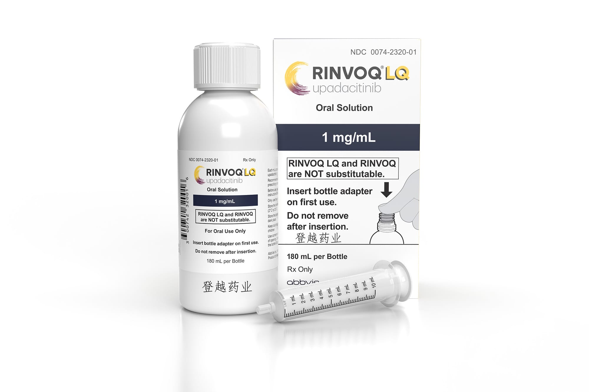除了片剂配方外,Rinvoq 现在还提供 1mg/mL 口服溶液。服用口服溶液时,应使用提供的压入瓶和口服给药注射器。口服溶液不能与 Rinvoq 缓释片替代。