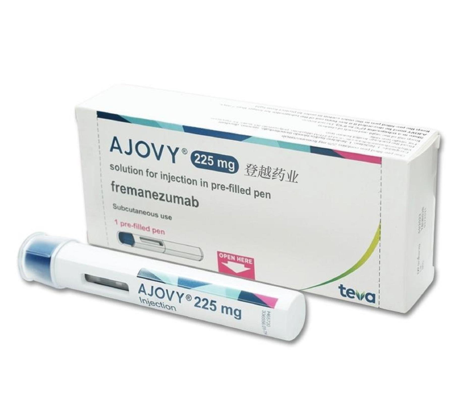 AJOVY 适用于预防每月至少有 4 天偏头痛的成年人的偏头痛。AJOVY 以 225 mg/1.5 mL 单剂量注射剂的形式提供,装在预充式注射器中,或在某些国家/地区装在预充式注射笔中。有两种剂量选择:每月一次 225 mg,皮下注射一次(每月一次),或每三个月一次 675 mg(每季度一次),皮下注射三次。AJOVY 可由医疗保健专业人员或患者或护理人员在家中使用。开始治疗无需起始剂量。
