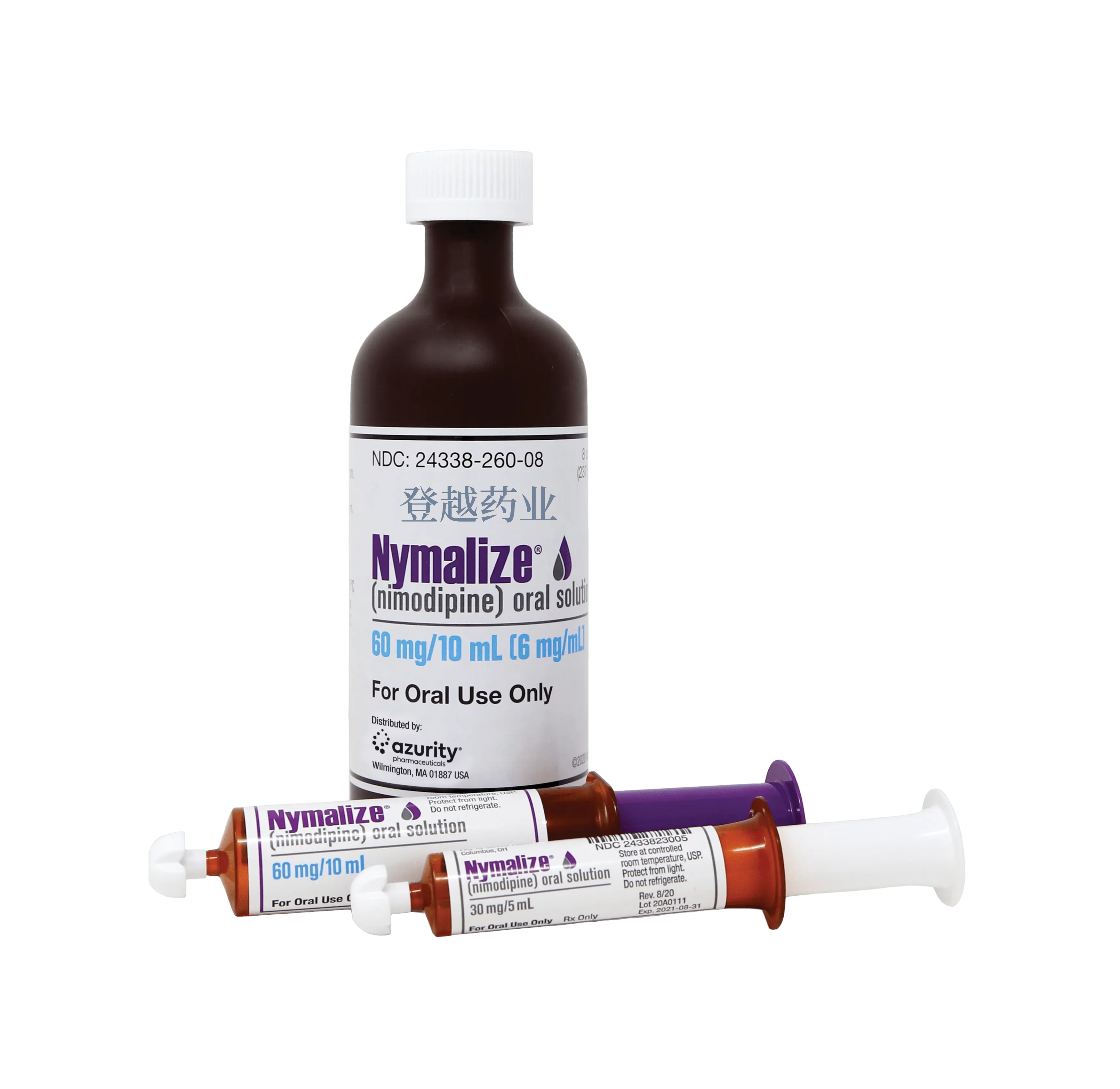 参考来源:‘ AZURITY PHARMACEUTICALS, INC. ANNOUNCES FDA APPROVAL OF NYMALIZE® (NIMODIPINE) ORAL SOLUTION 30 MG/5 ML PREFILLED ENFIT® SYRINGE. News Release. Azurity. September 3, 2024. Accessed September 6, 2024. ’
