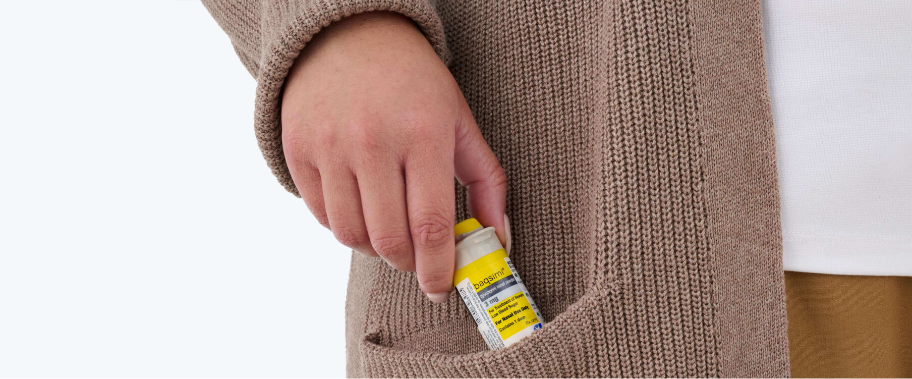 Baqsimi是一种即用型鼻用粉剂,可在一次性鼻内分配器中提供 3 毫克胰高血糖素。患者通过将尖端插入一个鼻孔并完全按下设备柱塞来给药,直到设备上的绿线不再显示;无需吸入剂量。如果 15 分钟后没有反应,可以使用新设备额外注射 3 毫克剂量。